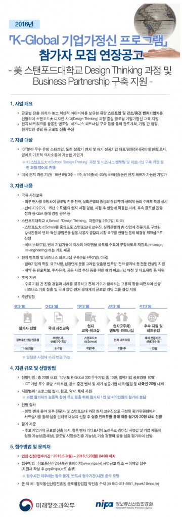 [창업/벤처]2016년 K-Global 기업가정신 프로그램 참가자 모집 연장공고