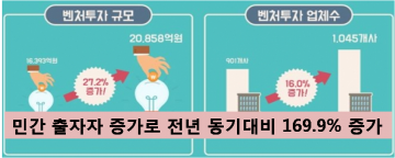 ·이로 인해 창업기업(창업 7년 이내)에 대한 투자비중은 전년 57.1%에서 70.0%로 확대되었고, 투자금액도 5,674억원에서 6,643억원으로 증가