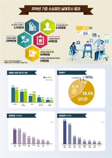 중소벤처기업부(장관 박영선)와 통계청(청장 강신욱)은 27일 우리나라 소상공인 실태 및 경영환경을 파악하기 위한 ‘2018년 기준 소상공인실태조사’를 공동으로 작성해 잠정결과를 발표했다.