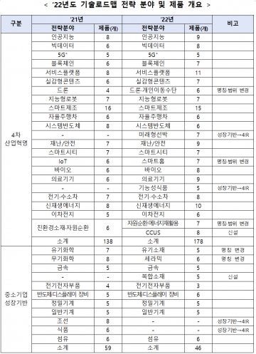 중소벤처기업부(장관 권칠승, 이하 중기부)는 중소기업의 미래 기술개발(R&D)에 대한 전략적 투자 방향을 제시한 「2022~2024년 중소기업 기술로드맵」을 발표했다.