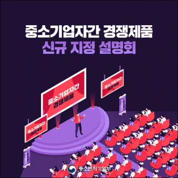 중소벤처기업부(장관 오영주) 및 중소기업중앙회(회장 김기문)는 3년간 효력을 유지하는 중소기업자간 경쟁제품 지정을 위해 중소기업단체 및 중소기업 대상으로 2월 19일 설명회를 개최한다.